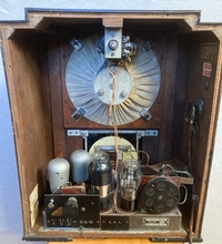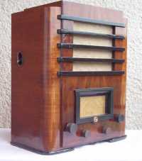 | Popis | 1 obvodový, s priamym zosilnením, striedavý prúd, bakelitový rámik okolo stupnice, 350x425x197mm, celuloidová stupnica so stanicami, dynamický reproduktor |