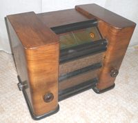 | Popis | 6-obvodový superhet na striedavý prúd, drevená skrinka, 18W koncový stupeň, sklenená stupnica so stanicami v m, dynamický reproduktor. |