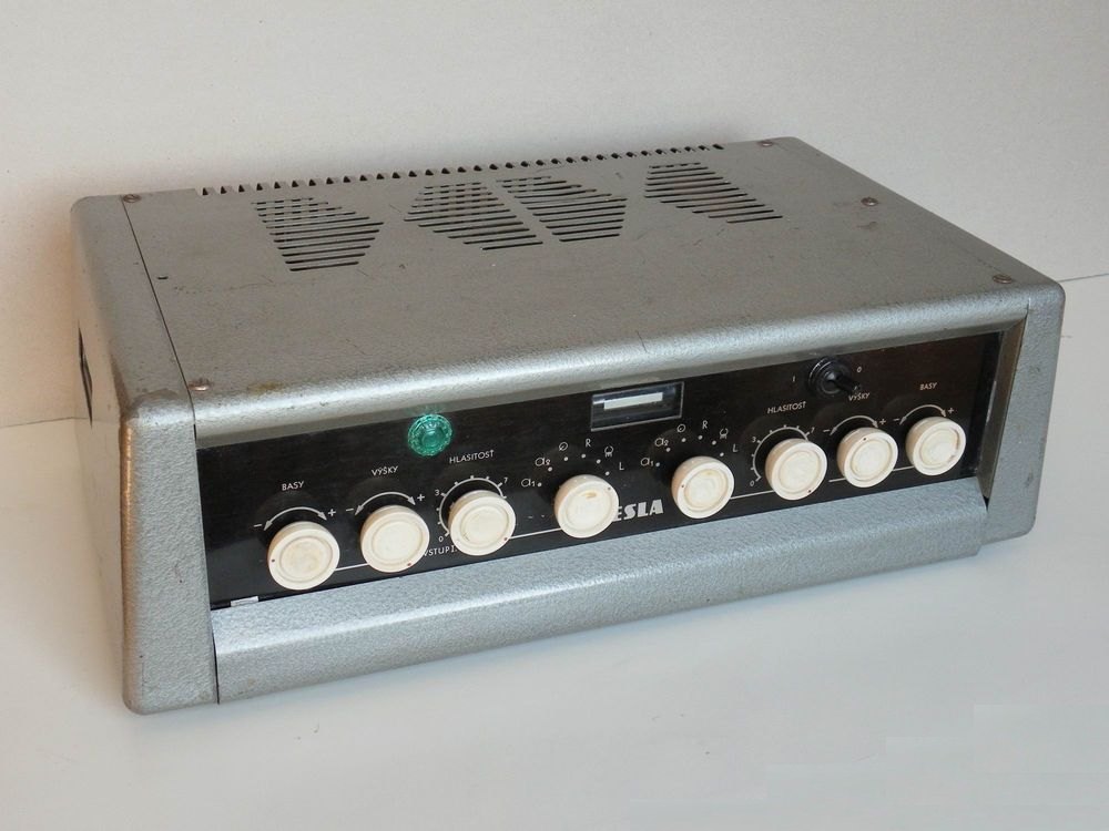 | Popis | Zosilňovač 20 W, max. 6 vstupov, pásmové clony, napájanie 120V a 220V. Výroba Tesla Val.Meziříčí |