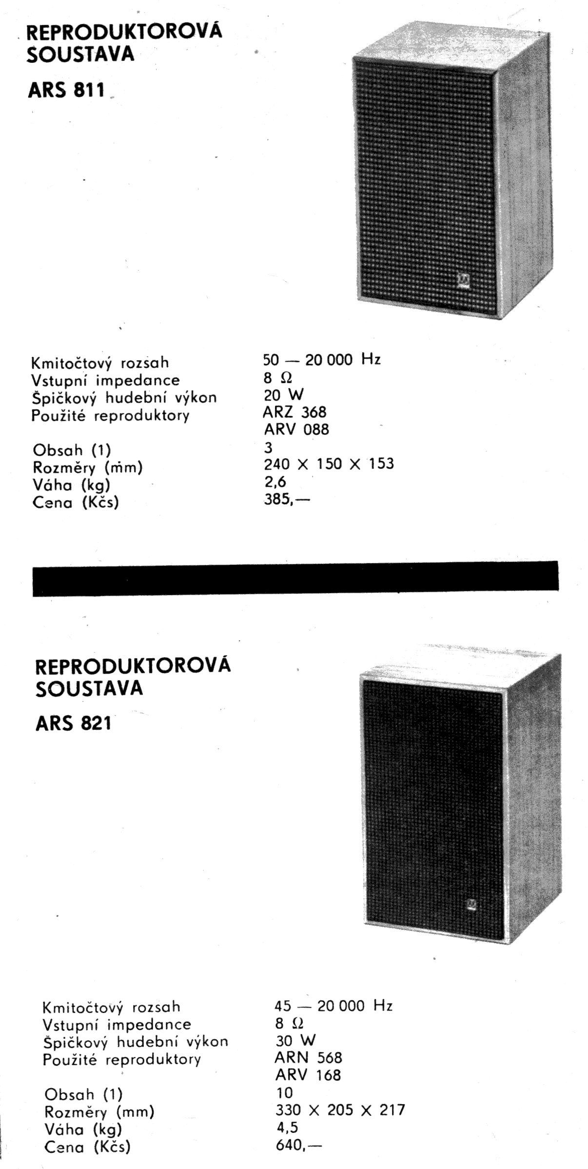 | Popis | Reproduktorová sústava, HIFI parameter - od 45 - 20000 Hz. Dobová cena od 385 - 640 Kčs. Výrobca: Tesla Valašské Meziříčí, n.p. |