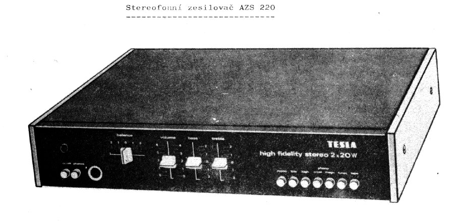 | Popis | Stereofónny NF zosilňovač, 2x25W, vstup zo 4 zdrojov, stolné prevedenie, sieťové napájanie 220V, hmotnosť 8 kg. Výroba Tesla Vráble, n.p. |
