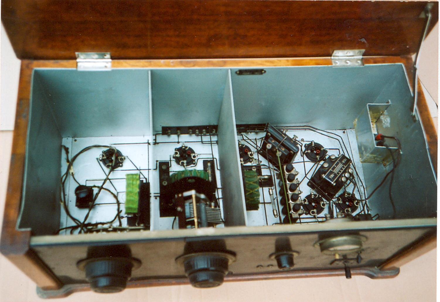 | Popis | Stavebnicový prijímač, dodával sa plánik a súčiastky od firmy Telektra. Byl to tovární luxusní radiopřijímač, zabudovaný do přerásné skříně z duboveho dřeva. Pět kusů tahových reostatů bylo umístěno uvniř skříně. Má dvojitý koncový stupeň. Rozměry 700x290x340mm. |