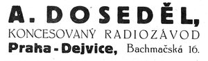 A.Doseděl, koncesovaný radiozávod, Praha-Dejvice, Bachmačská 16